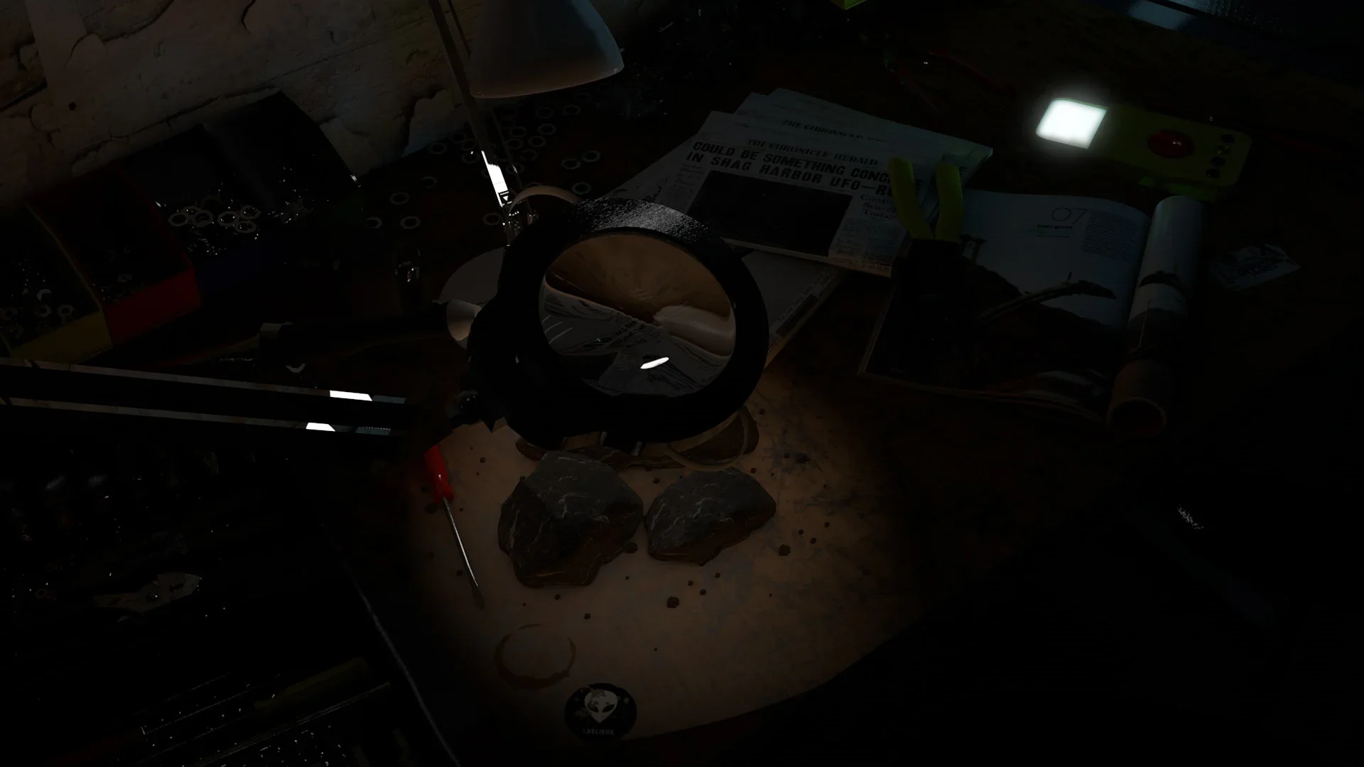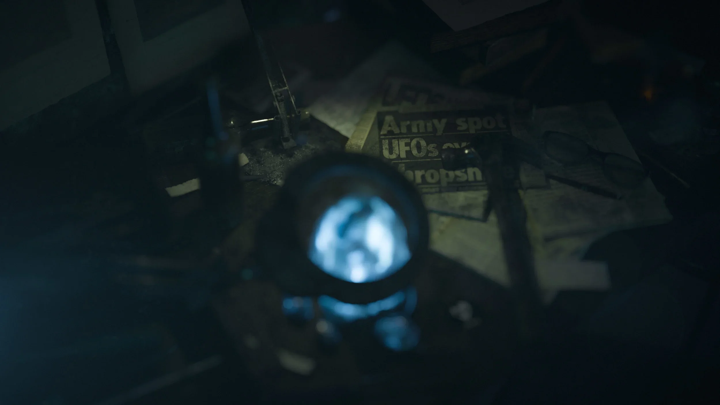 I wanted to convey the idea that you can think you know someone without ever having to see them. The objects on the characters desk give a glimpse into what he is like. From the small sticker saying "I believe", to the collected news papers reporting UFO sightings, to the mysterious glowing blue rock.
